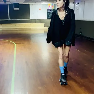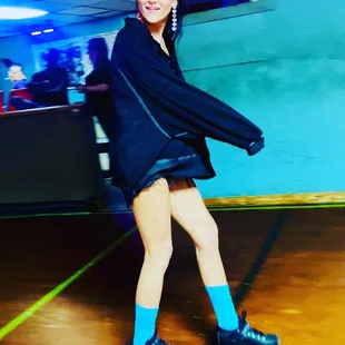 Skating indoors, 70s/80s atmospheric vibe with bright, black & strobe lights setting the roller disco tone.To find, the building from the outside is white, and there's gravel & grass parking available. To skate, is $7 per person,-NO INLINE SKATES-Regular roller skates-entire floor to ourselves-music he can change upon request.There was another small group there, the place was clean, VERY old looking and not too loud. Music was moderately loud, enough for conversation if you wanted. Wasn't too cold, normal attire worked fine for me.We did a mini photo shoot with the arcade side, owner did not mind10/10 Recommend for your next random activity for a Wednesday