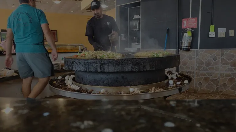 Friendly staff. My concern is the trash build up on the shelf under the grill. The scrapings and egg shells are there for everyone to stare at while food is being cooked above. Most Mongolian places use large blades as a nod to the warriors' swords. These guys used spatulas.Brought my sister to her first experience. We will not return.