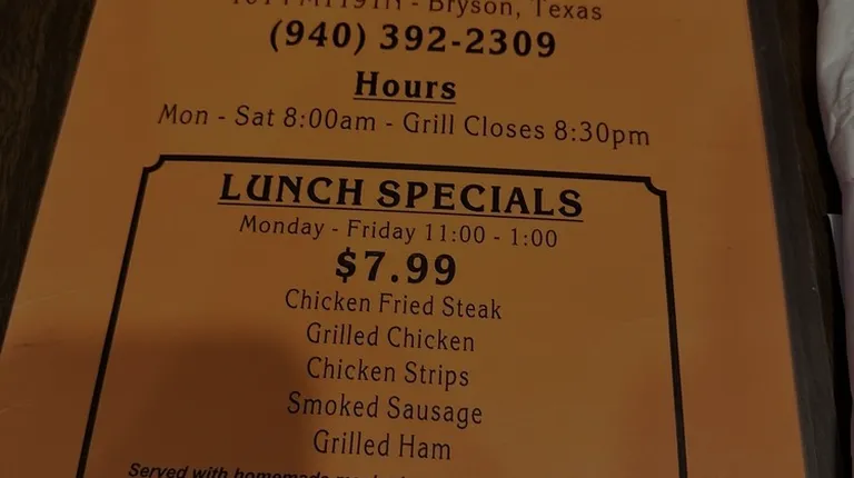 Small town diner with Mexican food. I actually wish I had tried the Mexican food. I had sliced brisket sandwich. It wasn't sliced but instead was chunks in a way too sweet catsup-tasting sauce. I'd call the brisket mediocre at best. This is texas, after all. If you are going to barbecue you'd better be great. My husband had chicken fried steak lunch special. He said it was very good except the mashed potatoes tasted instant ant the cornbread was thick fluffy and sweet. As a southerner, I don't do sweet cornbread. Overall I'd say this place was just ok. Doubt I'd stop here again.