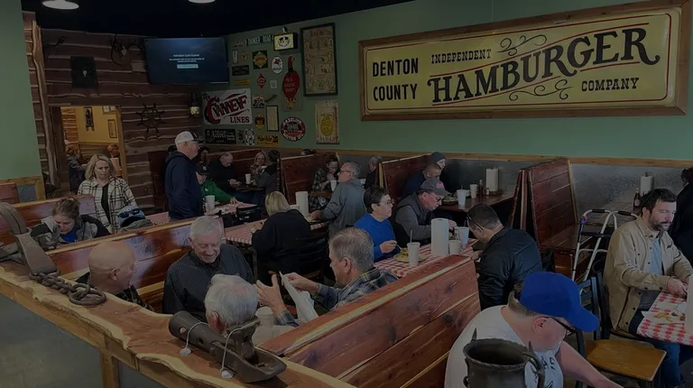 This is not the the DCIB place it clams to be any longer. Serving someone a hamburger on a bunn that had been in the freezer, is a bad idea.Buns that have been put into a freezer will crumble. Dinning room wasn't so bad.Bring back the real: Denton County Independent Hamburger please!