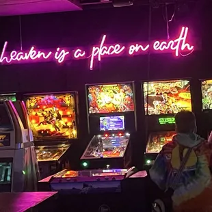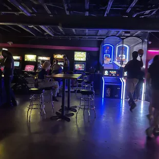 Fun games. Games atmosphere. Feels like you are in an arcade from when I was a kid. Nostalgic! Fun for the whole family. Will be back!