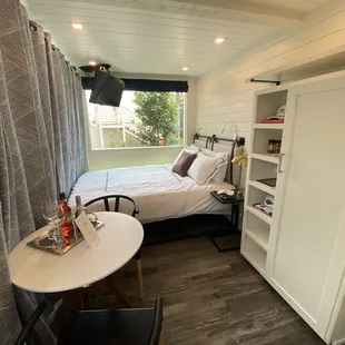 We really enjoyed our stay for 6 nights (aha). We were in Fort Worth for a wedding and the rehearsal dinner was at Jemelle. My BFF suggested we stay here, and I booked a container right away. The staff was incredible!! Warm, accommodating and eager to please. Robyn, Lily and Josie are THE best! I'm extremely grateful to all 3 gals for being so gracious each day. Huge shout out to Robyn especially when she stepped up at lightning speed to solve a little issue with our bed sheets. Yes, the container itself is quite small for two, but nevertheless super FUN, very clean, nicely furnished and definitely a unique experience:) LUV the roof top as well.The free drinks included with our stay were an unexpected BONUS!The food at Jemelle is next level and I'm not an Italian foodie like so many. I highly recommend this boutique Hotel and the yummy dishes at Gemelle!