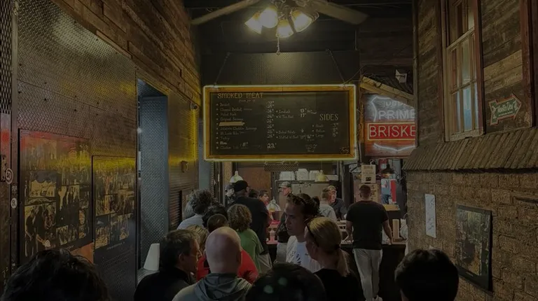 Solid eats. Brisket was great and tender, loved the fatty bits. Sausage was super flavorful and had a great crunch. Pulled pork was meh, kinda dry for my taste. Sides were excellent, cream corn was super busss. Fried okra was super good too.Workers mean as hell ngl, definitely knew we were out town and clowning us but maybe that's the charm.