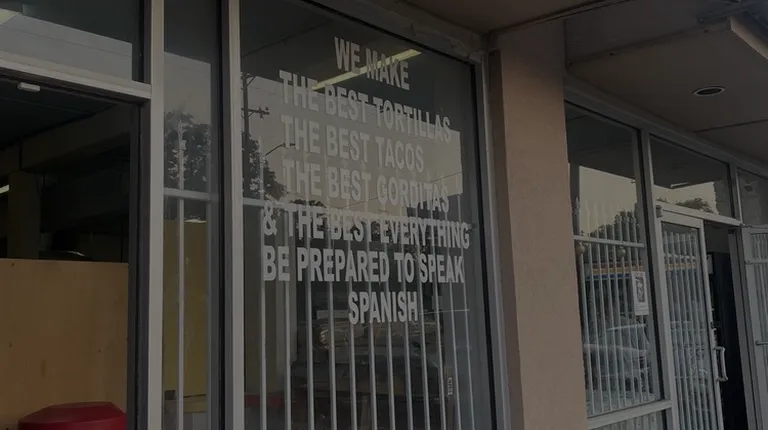 I just finished eating and this was an interesting choice for breakfast, while also being quite tasty. I wanted a breakfast burrito and running out of new places to try.... The other posters and that sign weren't wrong, as nobody there really speaks English at all and it was very loud as well since their tortillas were being made and that machinery isn't quiet. Luckily being born and raised in Texas means I can understand Spanish a little, though speaking is it's a whole other story (I try, though lol). But the chorizo and egg burrito also has beans and rice and tasted amazing. The tortilla being noticeably soft and fresh made all the difference. They also gave a hot sauce that was actually big enough for my burrito and actually had a kick to it (rare in the taquerias I've visited and there was a lot).My only complaint was that the burrito was smaller than I expected, but at just over $7 and a burrito that was made fresh and didn't try to fall apart when I was eating it, it was def well worth visiting here and I would def come back again