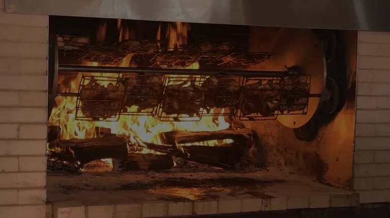 Loading the firewood for the grill.