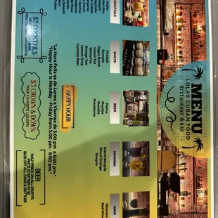 the menu for the restaurant