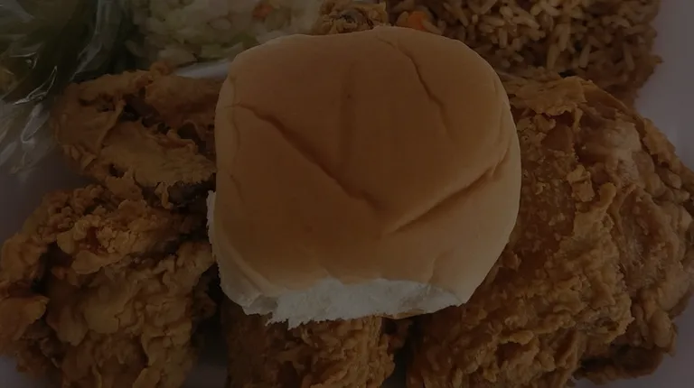 Another chicken spot in the area and here's how it went. A 3 piece crispy chicken with coleslaw and what I thought was dirty rice, but could have been fried rice. Chicken was juicy and tasty. Coleslaw was pretty good too. Rice wasn't bad but had to order it since they were out of Mac n cheese. Food was nice and hot. Don't have many negative things to say other than an annoying fruit flying kept buzzing around my food as I was eating.