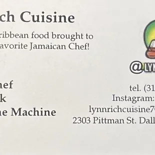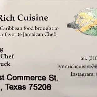 Lynn Rich can cook. Iv tried the jerk chicken, fish and oxtails and it's all seasoned great and tender. Definitely some if the best Jamaican food Iv had in Dallas and he's also not stingy with the portions so you will always get a bang for your buck. Go check him out!