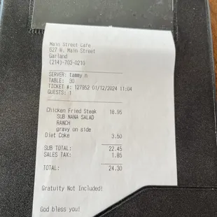 we had a large group and the management and staff handled it in a very efficient manner. one of our party has the chicken fried steak OMG it was big and delicious . all food our party order was plentiful and delicious . all parties will be back for more delicious food at Main Street Cafe . You should try this ..