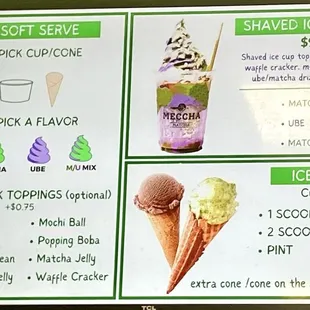 Meccha Matcha is located in Asia Time Squares Food Court in Grand Prairie, serving up great matcha ice cream, drinks, and other sweet favorites!This fine establishment has plenty of parking, so there is no need to worry about finding parking unless you come here during a big event. They are located inside the food court where there are many restaurants to choose from and they have plenty of seats and chairs to sit at in a nice clean well lit environment. I came through on a weekday and ordered the green matcha and ube swirl soft serve ice cream. I ended up getting it in a bowl instead of a cone, and the staff did a great job swirling it in the bowl. The ice cream was perfectly ice cold and was very flavorful and creamy. The flavor had a nice sweet touch to it but wasn't too overly sweet. The ube paired well with the matcha that was slightly bitter with notes of sweetness and umami.Overall, it was a perfect treat, and I enjoyed the ice cream. I'm looking forward to coming back and maybe trying one of the many matcha drinks they have on the menu. The prices and customer service were fair and average.