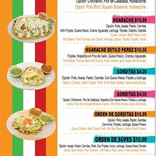 a menu for mexican cuisine