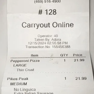 Ordered take out it was great. I love the crust. Service was great and my order was ready on time.