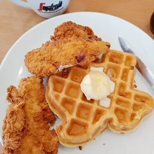 Chicken and waffles (the waffle is under the chicken - the waffle was huge, but the chicken was even bigger!)