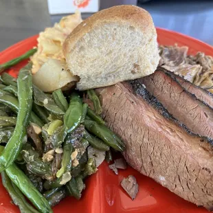 Chopped / Sliced Smoked Beef Brisket 2 Meats & 2 Sides Con Queso Mac N Cheese Smoked Beef Sausage
