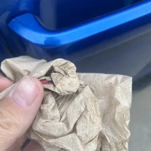 Looks like machine grease which was spread inside of my door handle obviously by the owner of the pizza cafe