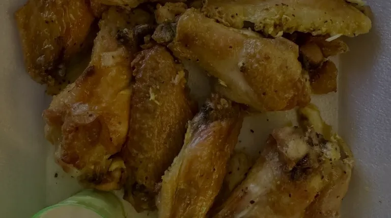 a plate of chicken wings with dipping sauce