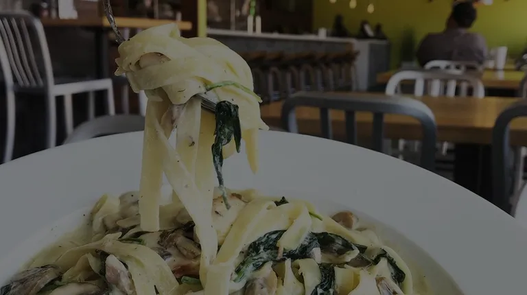 Fettuccine Alfredo with chicken, spinach, and mushrooms