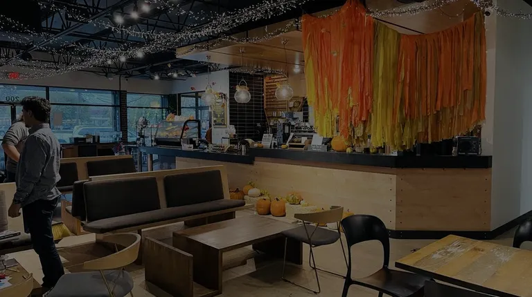a group of people in a coffee shop