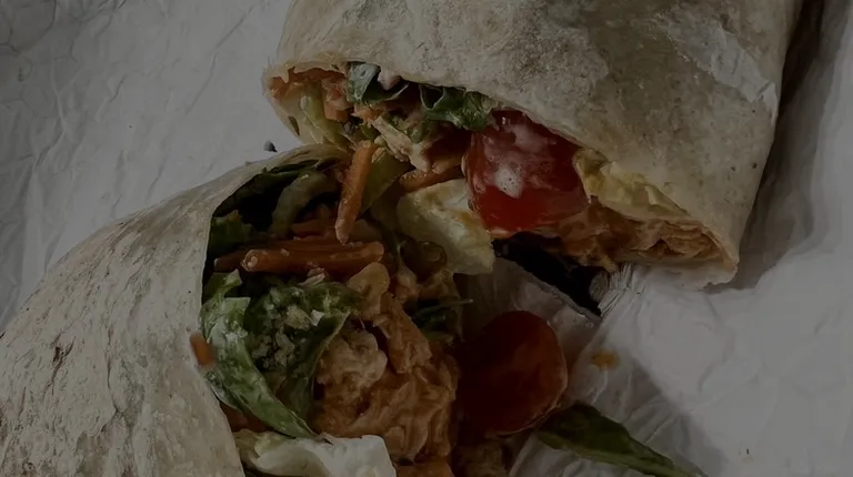 Avocado, marinated chickpeas, Brussels sprouts, cucumber, croutons, spinach, romaine and chicken or tofu, or steak (add'l charge), and lemon basil vinaigrette in a flour tortilla.