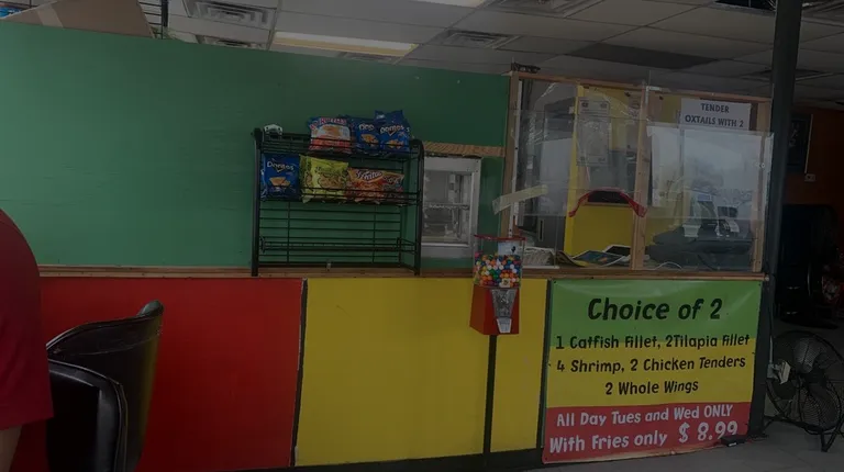 Serving catfish, tilapia, jerk chicken, curried chicken, tender oxatils, whole chicken wings, red snapper,cabbage, turnip greens hamburgers