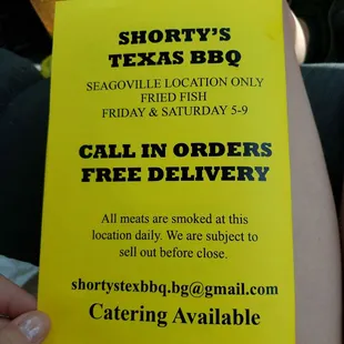 They were very kind and had everything ready. They included extra bbq sauce & toppings. The only complaints I'd have is the meat was all piled in one container. We ordered a variety of 5lbs and the Mac and cheese was so dry no one ate it, they also only included a few slices of bread. For the price I would've expected better quality.