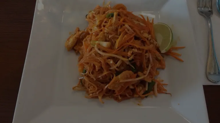 This was my first time and it was very very tasty. I had the Pad Thai with wonton soup and my buddy had the Thai fried rice. The service was great, the space was cozy. Not a lot of seating but it wasn't a problem as the food comes out relatively quick. Our water glasses never went empty and the amount of times the waiters checked in was great (not too often not too little) and our requests were met very quickly. The price point was perfect for the quantity you get! We were stuffed!Great location tied with great service and good makes this my new go to spot for Thai food!