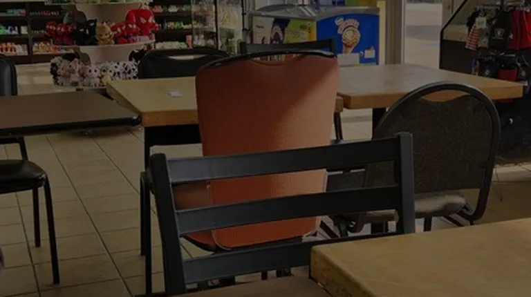 Corner of ordering area inside gas station.