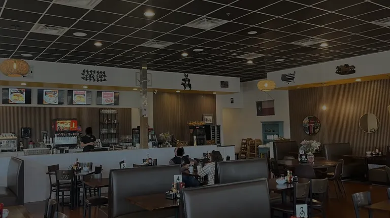 Located kinda close to the Texas Health Presbyterian Hospital Plano, Texas, this restaurant with a very plain name and large menu, served up breakfast classics. I thought the pricing was high for the portions served, but it was tasty.The cafeteria at the hospital is closed on the weekends, so my brother and nephew had found this restaurant the previous morning. I wanted to buy my nephew breakfast since I hadn't seen him for a while, so the two of us came back here the morning after I flew into Dallas. He had just discovered skillets (dish with hash brown as a base, and all kinds of breakfast foods on top), and he wanted to try it again.It wasn't very busy inside, even though it was a Sunday morning. We were seated right away, and our waiter started and continued to be attentive. We both got the same thing: Mexican Skillet (14.99) consisting of chorizo, vegetables, cheese and choice of eggs (mine being over easy). It came soon after, and was served on a typical stone dish (not a skillet). The portions were small, and was light on the chorizo (but had plenty of jalapenos), but the hash browns were very crispy and delicious (the eggs were ordinary). I ordered some salsa with it (which they did not charge me), but didn't need it. The skillet comes with choice of bread, so got english muffin. There was jam packets available at each table, and unfortunately it tasted old. The english muffin had been grilled with butter on the flat-top, a good idea if done right, but it had been squished on it, getting rid of all the nooks and crannies. Not sure why they didn't just put it in a toaster.Paid for the meal tableside, once I got our waiters attention. We had ordered a couple of breakfast bagel sandwiches to go (one sausage and one with canadian bacon) for $7.99 each and it used fresh eggs. They did a nice job of wrapping it, and it was a nice breakfast for the folks who stayed behind.