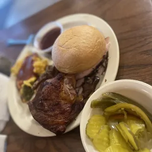 Location is convenient with ample parking in modest neighborhood. barbecue spot with very friendly and helpful staff. The highlight of our meal was pork ribs, sweet tea, and rice casserole. The negative is a very soupy mac & cheese and very dry sliced brisket (not juicy and tender).