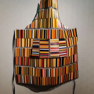 a multicolored apron hanging on a wall