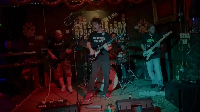 This place is a total dive and time warp into the 70s. It's more of a place where locals like to go, however they do have live music every now and then and are trying to incorporate it more. The bartender has a smile on her face the entire night I was there and I was in one of the bands playing this particular night. They have a small stage setup and some house speakers that point in one direction, so if you're along the side of the bar, you probably wont be able to hear the vocals very well. The parking lot seems a little sketch, but they do have security cameras around the bar which you can monitor from the inside. One thing that does suck is, this place is "cash only" however when you start a tab, they still take your credit card, I guess as a place holder(?) but it can be confusing to think they they do. Make sure if you do come here you got some money on your or else I heard there's an ATM. When I first got here earlier in the night, it seemed like mainly a place for the locals to go in this super smokey bar, so just another thing to keep in mind when you come here. However they did have a free spread of hotdogs and other miscellaneous food things.