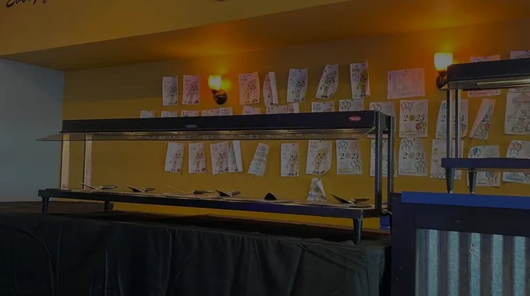 a view of a restaurant counter