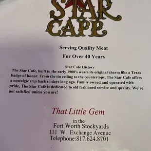 Great food , good service and a great location. Prices are ok for the foods served at The Star Cafe.
