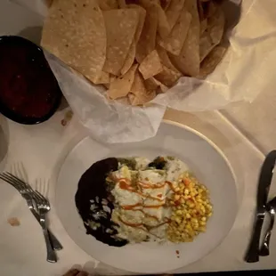 Pork tamale, beef enchilada, black beans and rice. Pretty good. The beef was a lil dry though
