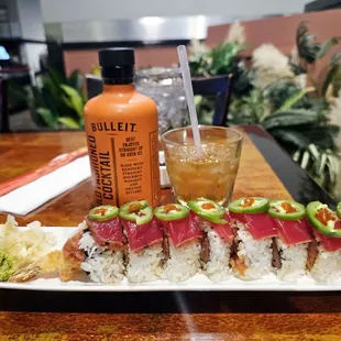 Mango cali roll on bottom middle is Fort Worth top is Cajun