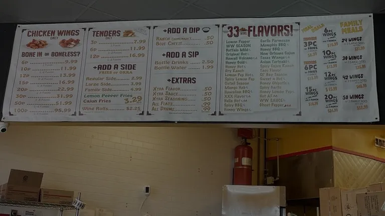 Great place they fast always call my order in I either get spicy ranch regular ranch garlic honey hot oxtail flavor is real good and they season your fries too but you don't really have to have your fries season and then they have Kool-Aid they Kool-Aid is on point and they have different type of deals the menus down here