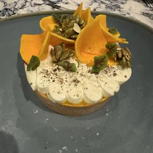 quinoa + pumpkin crunch, french radish, egg bottarga, extra virgin olive oil