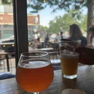 We stopped here for drinks before dinner - it was our first time, and such a cool taproom! It was quite small inside and the flow was a little cluttered i.e., the line to wait to order at the bar cuts right through the main center of the room so it feels a bit cluttered when the line is long. There was only one bartender behind the bar when we were there and boy was she efficient! I ended up getting the Alpen Gose beer (Telluride Brewing) and my husband ordered a Goliath Brewing beer but it kicked halfway through so the bartender gave him that one for free and he got to pick a new beer. We had the Denver Eat and Drink pass which got us a BOGO beer, so really we got three beers for the price of one! It was fun to sit at the window seats and people watch outside. I also really liked how we got "charity" coins for each drink purchase, and a portion of our drink goes to either a humanity/environment/animal non-profit of our choice (We put the coins in their buckets). Will definitely come back here for a drink!