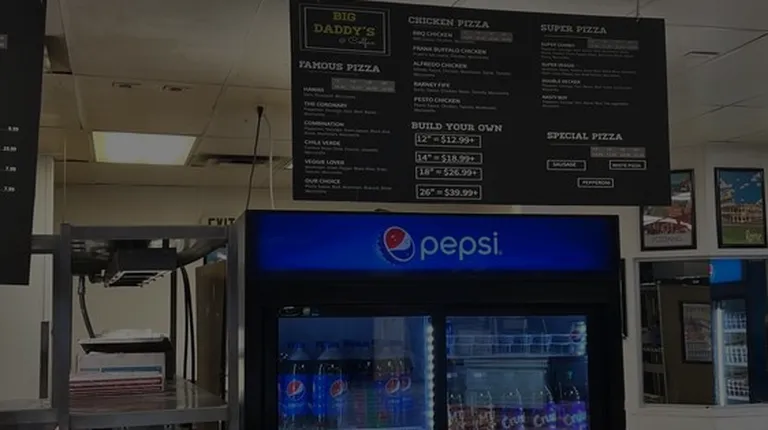 Big daddy's.... More like big disappointment.This is some of the worst food I've ever had in my entire life. The chicken fingers wouldnt be eaten by a 5 year old child and the "bread sticks" showed up as half cooked balls of dough. Pizza 2I'm serious. Do. not. EVER. Order. Food. From. Here.