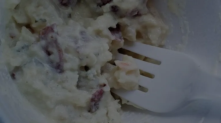 Loaded baked potato: cheddar cheese, sour cream, topped with brisket