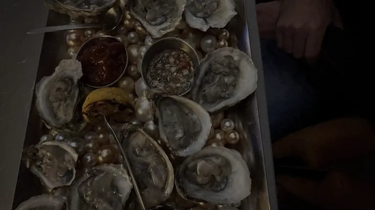 Call Me Pearl is a chic bar located in the Rally Hotel overlooking Coors Field. A giant chandelier with bulbs representing pearls hangs above the well-decorated space. Nods to classic cocktails and food are in the extensive pearlescent leather menu. Definitely go during happy hour from 4-6pm Monday - Saturday as drinks and small bites are a steal. We made a reservation and I would recommend making one since it got busy around 5pm on a Thursday, keeping our 2 bartenders and 1 server quite busy. Happy hour cocktails are made with their house lemon infused vodka and both the lemon drop and cosmopolitan were delicious. The cosmo wasn't the standard bright pink one like in 'Sex and the City', but a classier peach pearl color. We decided to try a sampling of all snacks that were offered. The wagyu slider was flavorful but a tad overcooked, edamame hummus was plentiful with tasty toasted pita, a nice selection of oysters were served on a bed of pearls, deviled eggs had a great savory lemon-Dijon filling, and our table's fav was the tuna poke on rice cake. These rice cakes were more like a crispy hash brown made of rice with just the right amount of spicy tuna on top. We even ordered a second batch.