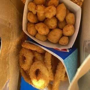 fried chicken, fries and a drink