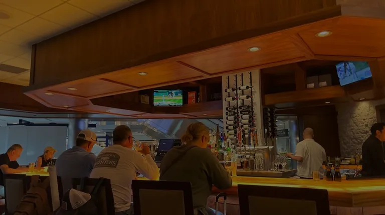My first time at my favorite QB's establishment, probably the nicest looking airport restaurant I've been to. They have replica Lombardi trophies and other memorabilia on display. I was seated immediately, it was about 75% full. The service was professional and friendly. I tried the Colorado burger with green chilis and over easy egg. The bun was slightly dry. It was medium well but I ordered medium. The side of shoestring fries was large and tasty but $11 seems a little steep to add on top of $26 for the burger. A little disappointing for the price point.