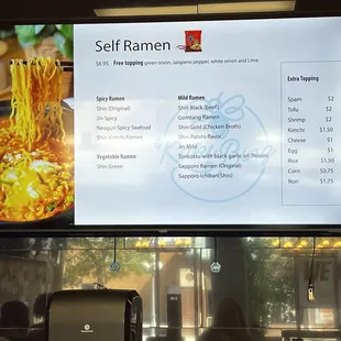 Overall: 5/10Food: 8/10Service: 2/10Ambiance: 7/10Value: 4/10This pace is SUPER confusing, especially after our visit of Hangang Ramen. Unlike Hangang, this place does not display the ramen so you have to have either google or an already working knowledge of Ramen types. There was only one guy working that didn't speak English so he couldn't answer any questions. Plus, there's a free toppings list and a PAY toppings list that wasn't very well explained. Food was fine but it took forever to get it. At Hangang, you physically select your food and then bring it up to the register. Here you order, wait and pray. This place is also pretty spendy if you don't know what you're doing like us first time through. My guess is if you come here often and have favorites, it's pretty quick and easy. Do your homework before you come here!