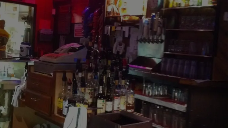 a bar with neon signs