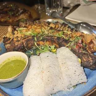 If Paris and Hanoi threw a dinner party, this restaurant would be the delicious result. Ambience is dim lit with a lot of tall plants. Our server was very attentive and had a lot of great suggestions. The Beef Luc Lac is pure magic--tender, buttery, and perfectly charred that might just make you blush. The chicken dumplings and shrimp crispy rolls are so good they could end family feuds, while the French-Vietnamese ravioli prove that cultural fusion belongs on every plate. As for the pork ribs? They're so tender and flavorful you'll be tempted to gnaw on the bones in public (no judgment here). Oh and our server got us hot towels to clean up after the ribs - just five star treatment overall! Desserts here are the grand finale you didn't know you needed. The tapioca pudding is a creamy, tropical dream, and the pineapple upside-down cake makes you wish every cake came flipped. This place isn't just a meal; it's an edible adventure. Come hungry, leave blissfully stuffed, and don't forget to loosen your belt before dessert--you'll need it.