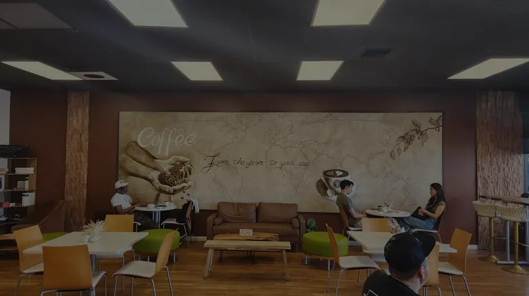 tables and chairs in a coffee shop