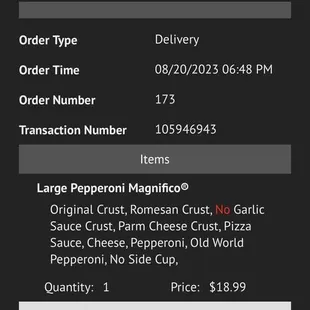 Online ordering for delivery review....and let me say it was not the greatest experience at all. Logged in to my account to apply a special discount for the pepperoni magnifico and it wouldn't accept the coupon code. So i had to create a new account, losing all my rewards. Order placed at 648p with a noted 30min for creating my order and delivery time. The online tracking was not working as the system was in a constant "your information will be available by 650p". I got a text my order was on its way by 815p. Pizza arrived at close to 839p. Pizza was cold and the salad greens on the wilted side. Food delivery in general has always been fickle to my neighborhood (drivers get a bit confused despite my home being right near the entrance) but definitely expect better. Won't be a repeat customer.
