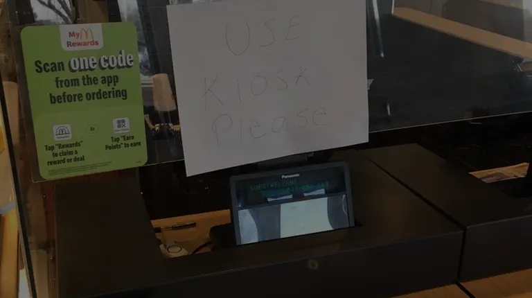 This was a great location around 15-20+ years ago. Has been slowly going downhill since. Now is a train wreck most all the time. Is literally never consistently clean (virtually always you'll see grime on most all the tables if not all the tables--so gross). Today, they had an empty lobby, nobody cleaning the tables that were virtually all grimy or or laden with crumbs, and maybe 1-2 cars in the drive-through (none in the pick-up spots), at a time that should be the start of the early dinner rush. Wanted to order something there on top of my mobile order, and avoid the grimy kiosk (prefer cashier anyhow), but the cashier plexiglass had a sketchy, hand-made "sign" (computer paper) scotch taped to it, saying "use kiosk please" (see photo). Manager on duty said "store manager" decided that and that it wasn't against company policy (I verified the latter was a lie on calling customer service). Ridiculous.