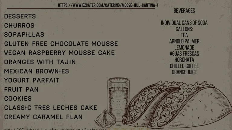 Catering options click here to order https://www.ezcater.com/catering/moose-hill-cantina-1